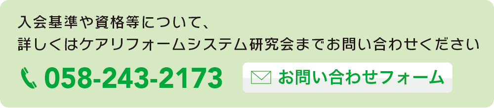 障がい児・障がい者・高齢者とその家族の立場を第一に考え、本人の自立(自律)支援と介護者の負担を軽減するため福祉機器の活用や住環境の整備等によるケアリフォームシステムの普及活動を行い、保険福祉の増進に寄与する目的とする事業者の団体です。