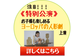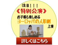 今回は特別公演として親御さんにも楽しんで頂けるチェコの人形劇を日曜日に上演します。 その他、介護者付き旅行のご案内キッズに嬉しいプレゼントなどを多数ご用意しております。 |