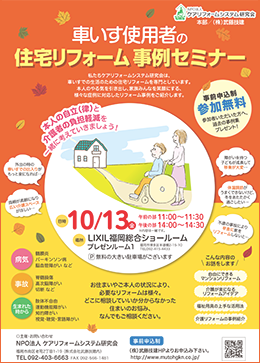 10月13日にLIXILショールーム福岡プレゼンルーム1にて、“車いす使用者の住宅リフォームセミナー”を開催し、沢山の方々にお集まりいただきました。
