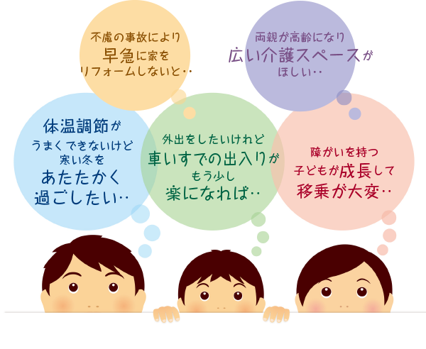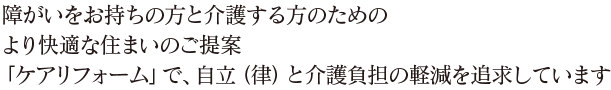 一般に言われている介護リフォームからもう数歩踏み込んで、障がいのある方が生活しやすく、介護をされる方が安心して介護ができる環境を整えること。それを武藤技建では「ケアリフォーム」と呼んでいます。