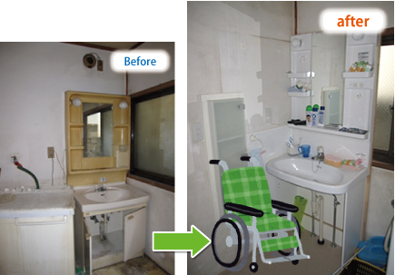 低価格の洗面台を改良し、車いす仕様に。ご予算にあわせてリフォームプランをご提案させて頂きます。