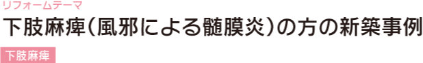 | 症 状 | 下肢麻痺(風邪による髄膜炎) |